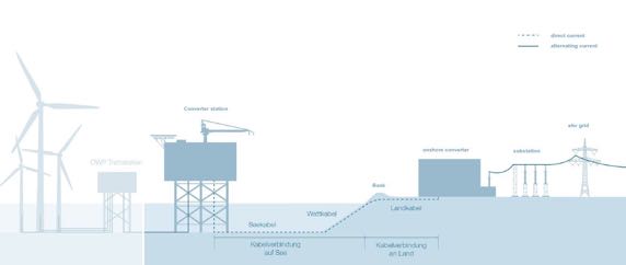 Store havvindparker trenger en transformatorplattform som omformer strømmen til høyere spenningsnivå, og for eksempel likestrøm, for mer effektiv transport til land.
